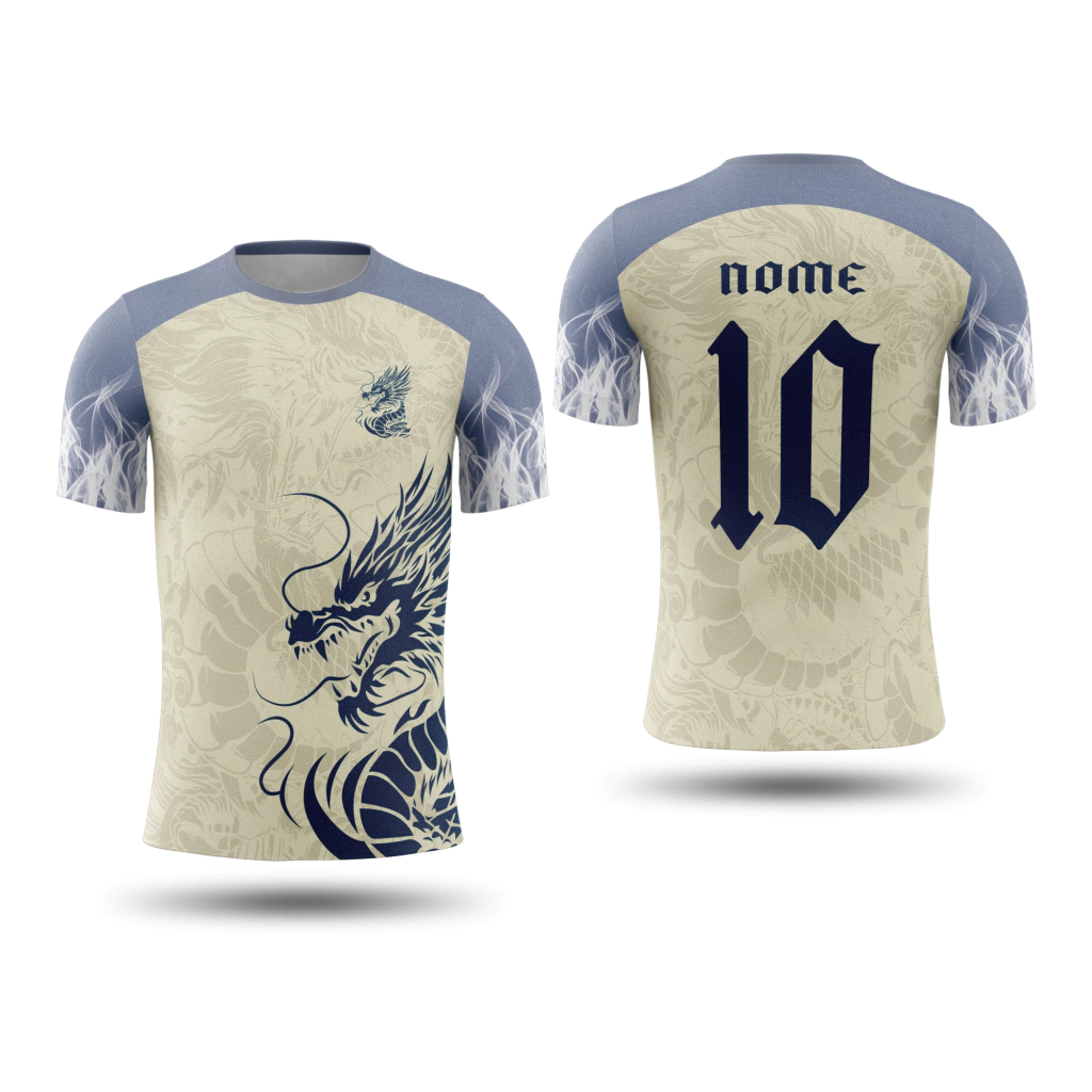 Camisa Interclasse Personalizada- Dragão Azul Bege - Dry Fit - Personalizavel